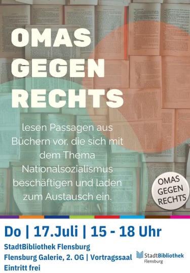 Dieses Projektes findet in unregelmäßigen Abständen, aber konstant, statt. Wir erinnern an Menschen, deren Schicksal uns mahnen sollte, dass wir die Verantwortung dafür tragen, dass Ausgrenzung und Diskriminierung aufgrund von Religion, ethnischer Zugehörigkeit, politischer Einstellung, sexueller Orientierung oder einfach nur Unangepasstheit nie wieder geschehen darf. Aktuelle Termine siehe unter "Termine", in der Presse oder auf der Seite https://www.instagram.com/omasgegenrechts.flensburg?utm_source=ig_web_button_share_sheet&igsh=ZDNlZDc0MzIxNw==