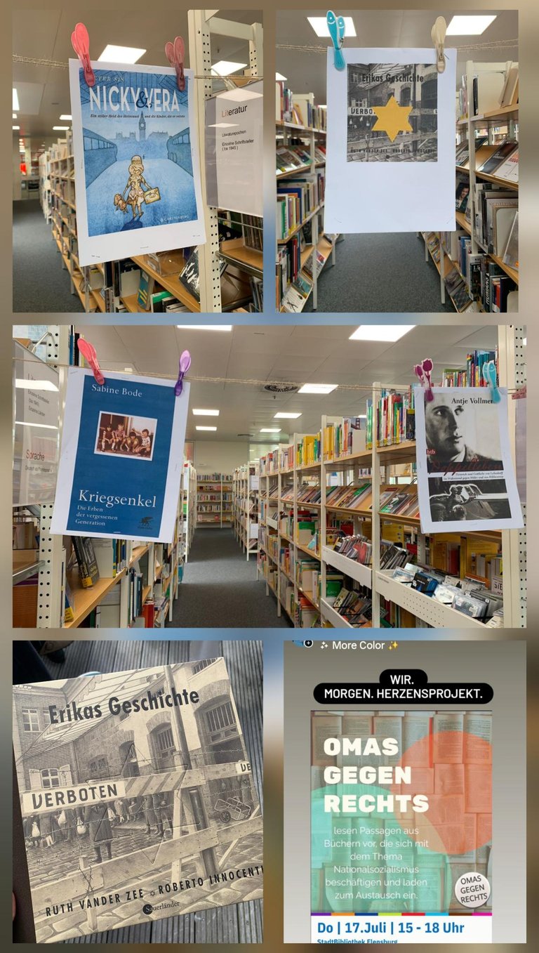Zwei der „lebenden Bücher“ gehörten zu den Omas Gegen Rechts Flensburg. Eine von ihnen erzählte von ihrer anhaltenden Suche nach der Großmutter, von der niemand in der Familie erzählen wollte. Lange Recherchen brachten die tragische Geschichte einer jungen Frau zutage, die wie so viele, Opfer des grausamen Euthanasie Programms der NSDAP wurde. Unsere zweite ‚Oma‘ hat mit ihren 95 Jahren Lebenserfahrung klare und sehr persönliche Erinnerungen an die Kriegsjahre, während denen ihre Mutter als Ärztin arbeitete und die Familie mehrmals den Ort wechselte, bis sie zum Ende des Krieges eine abenteuerliche Flucht gen Westen unternahmen. Diese kostbaren Erinnerungen einer Zeitzeugin sind wahrlich durch kein gedrucktes Buch zu ersetzen, denn diese beantworten keine spontanen Fragen.